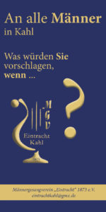 Wir haben einen neuen einfachen Informations-Flyer erstellt um in Kurzform über uns zu berichten und aufgeschlossenen Sängern Gelegenheit zu geben, mit uns zu singen und sich mit uns in unserer Gemeinschaft wohl zu fühlen.